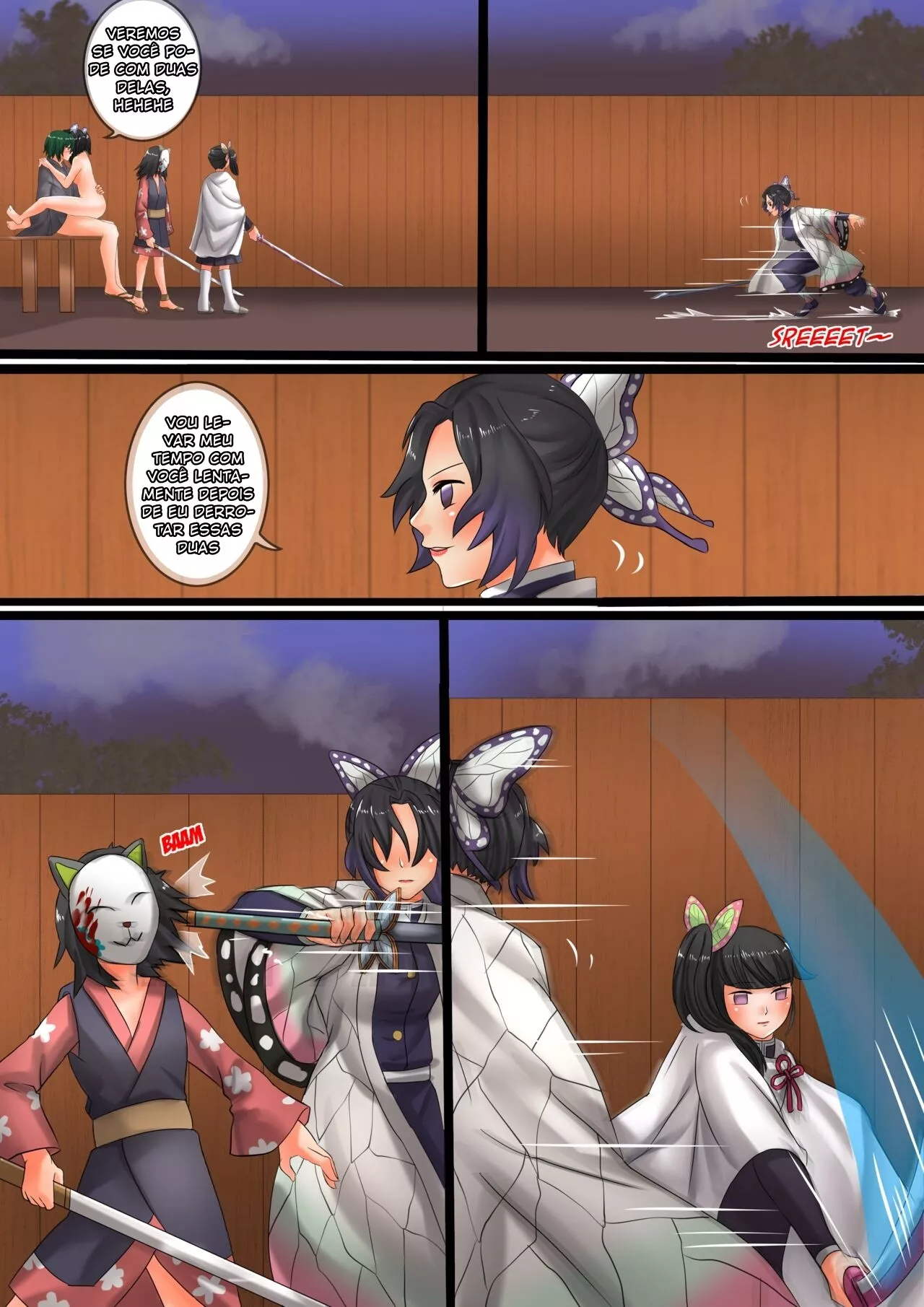 Demon Slayer Hentai: Demon Saga VL.3 – Nesse capítulo 3 da história Demon Saga, onde Shinobu entra pro Harém do protagonista. Depois dele usar da irmã revivida para enfrentá-la numa batalha e quebrar seu psicológico. Seguido de uma cena de sexo em grupo com as irmãs e as discípulas da Hashira…