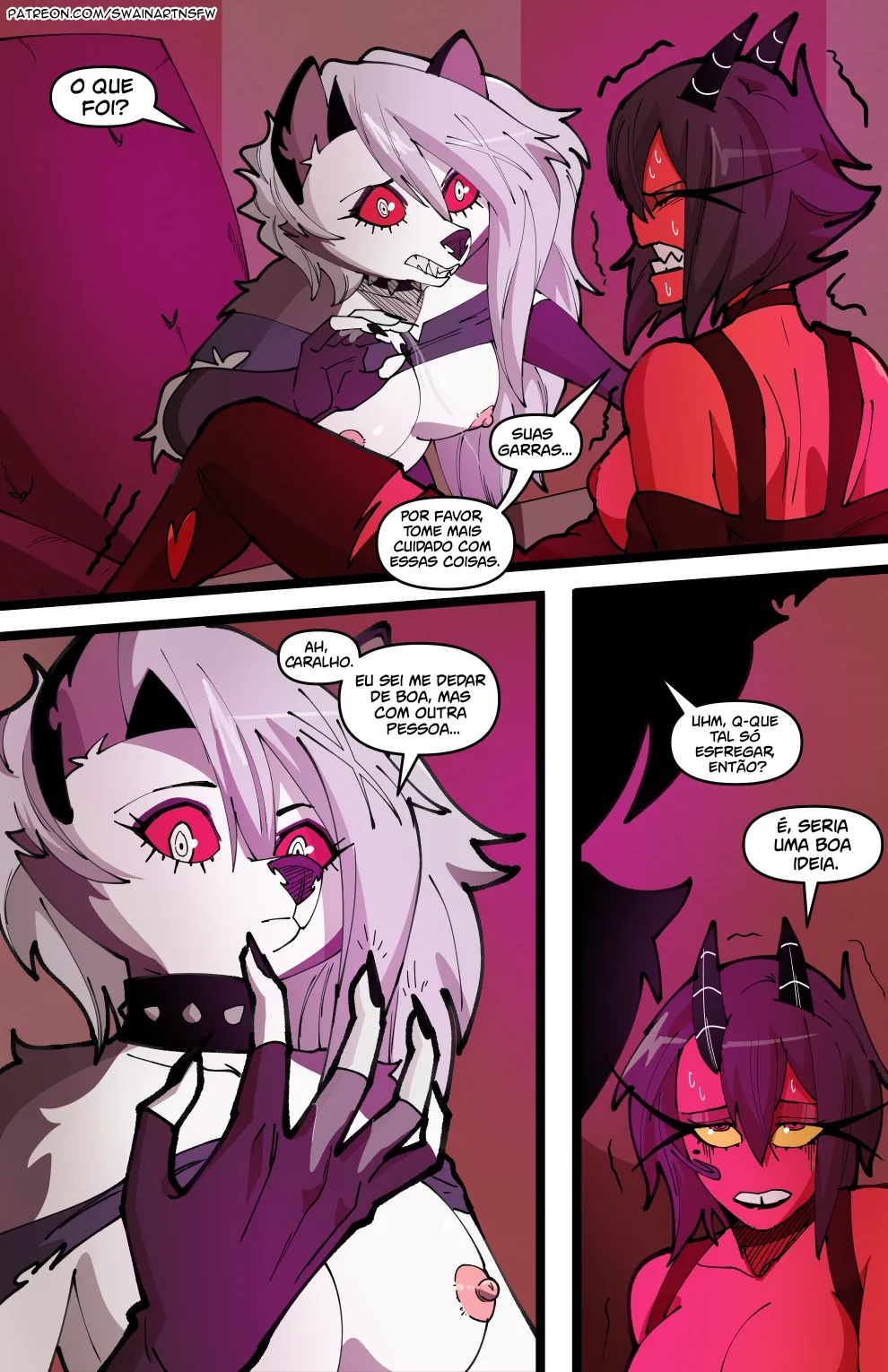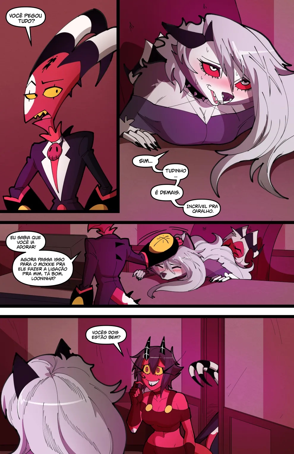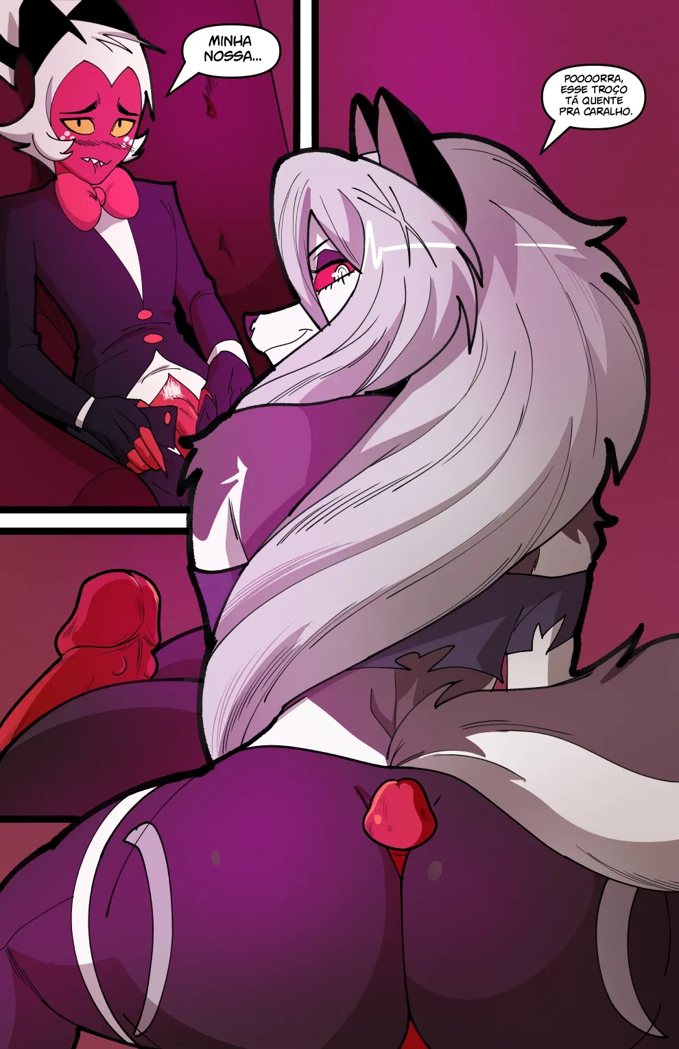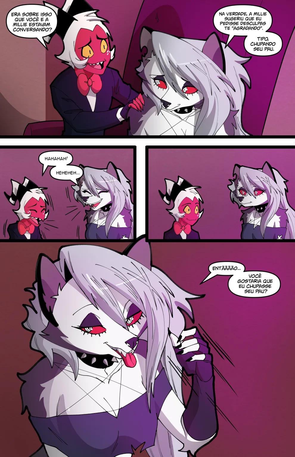 Helluva Boss Hentai: Trio Infernal VL.02 – Venham ler a continuação desse hentai sacana desse mangá Helluva Boss. O quadrinho pornô começa com a Loona no cio, a danada tinha acabado de transar, mais já estava com vontade de novo, querendo ganhar leitinho na buceta outra vez…