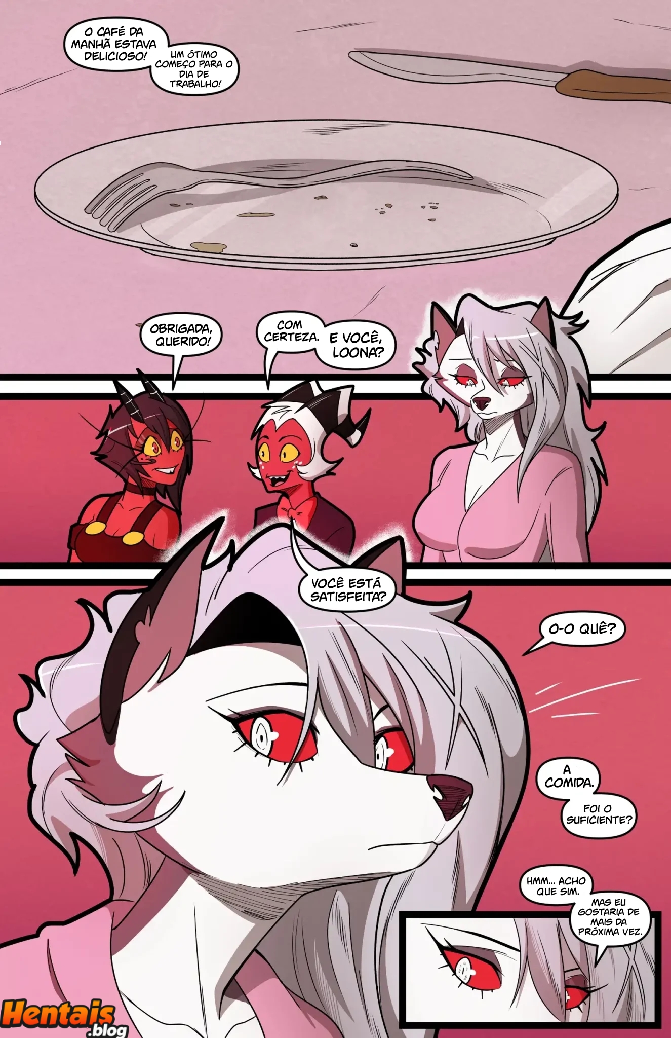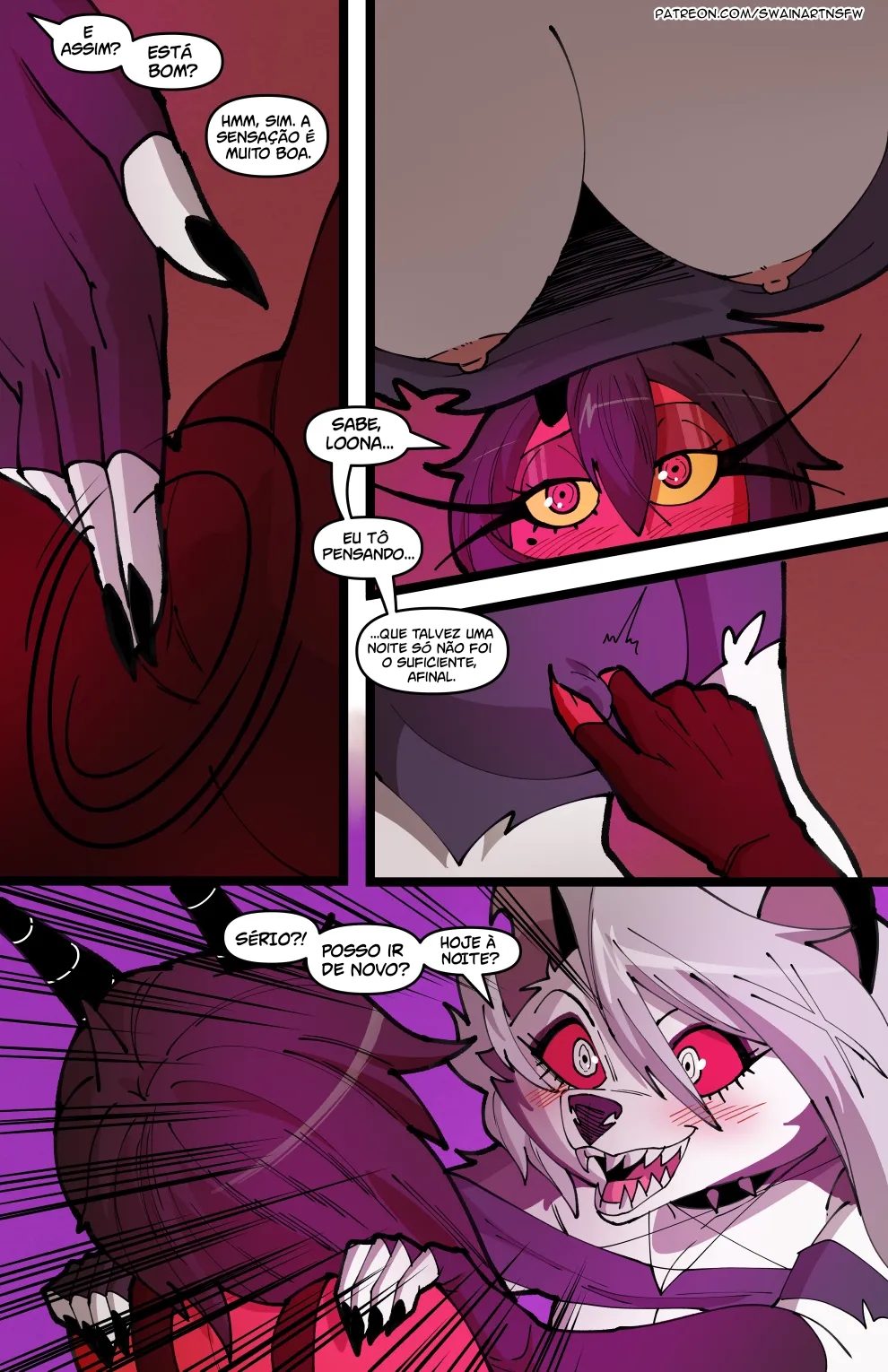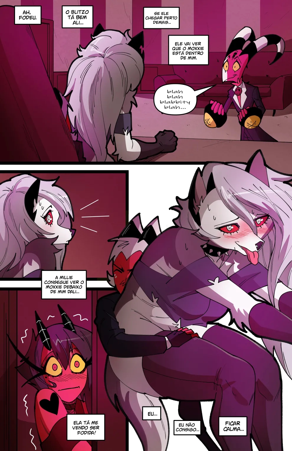 Helluva Boss Hentai: Trio Infernal VL.02 – Venham ler a continuação desse hentai sacana desse mangá Helluva Boss. O quadrinho pornô começa com a Loona no cio, a danada tinha acabado de transar, mais já estava com vontade de novo, querendo ganhar leitinho na buceta outra vez…