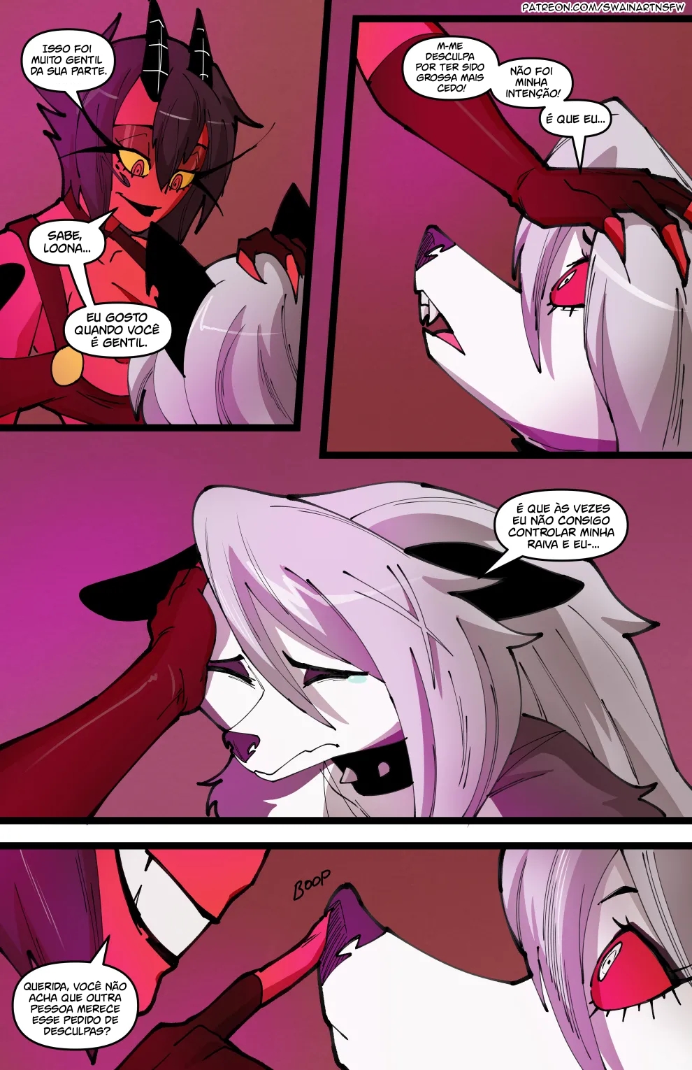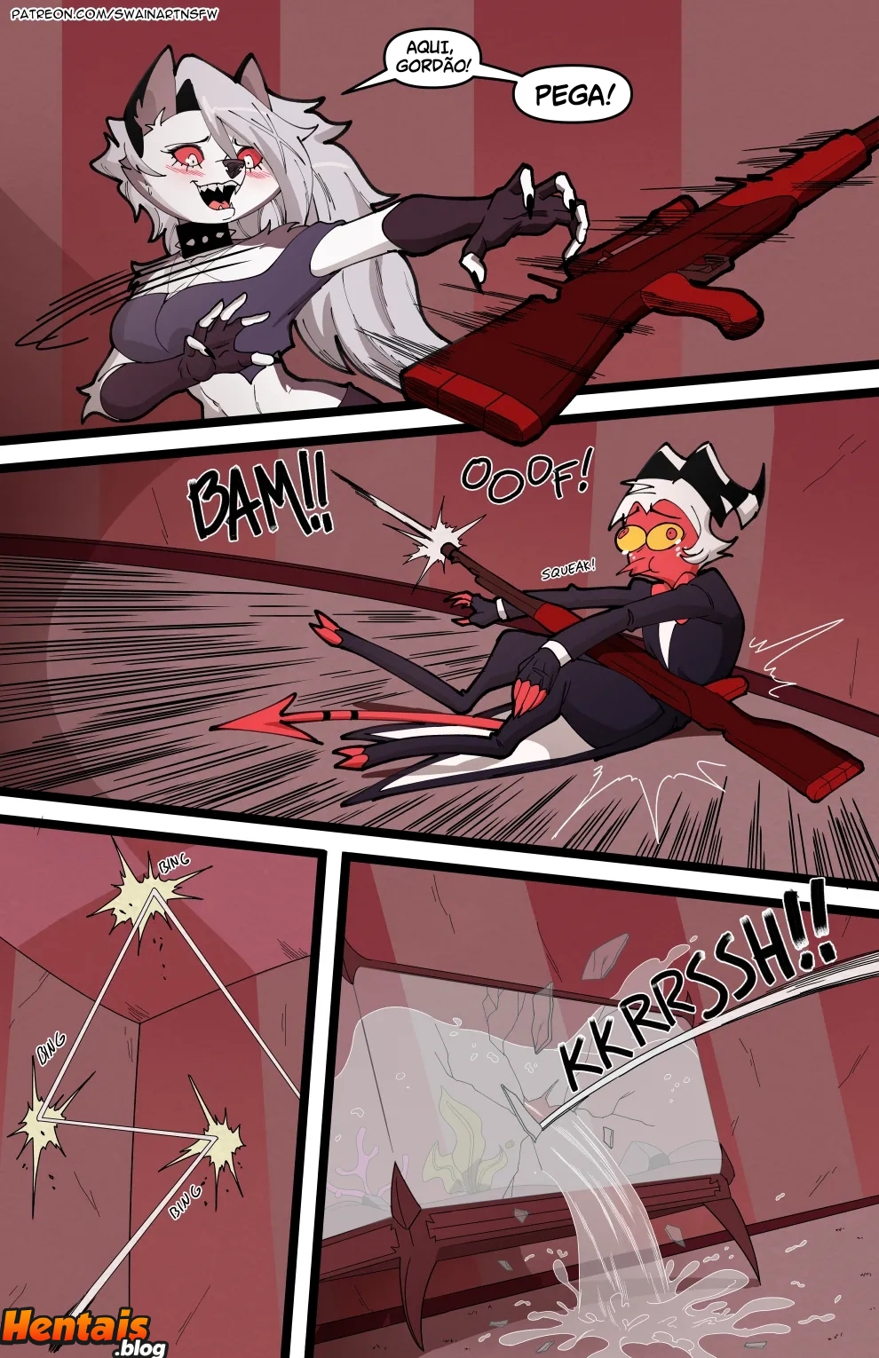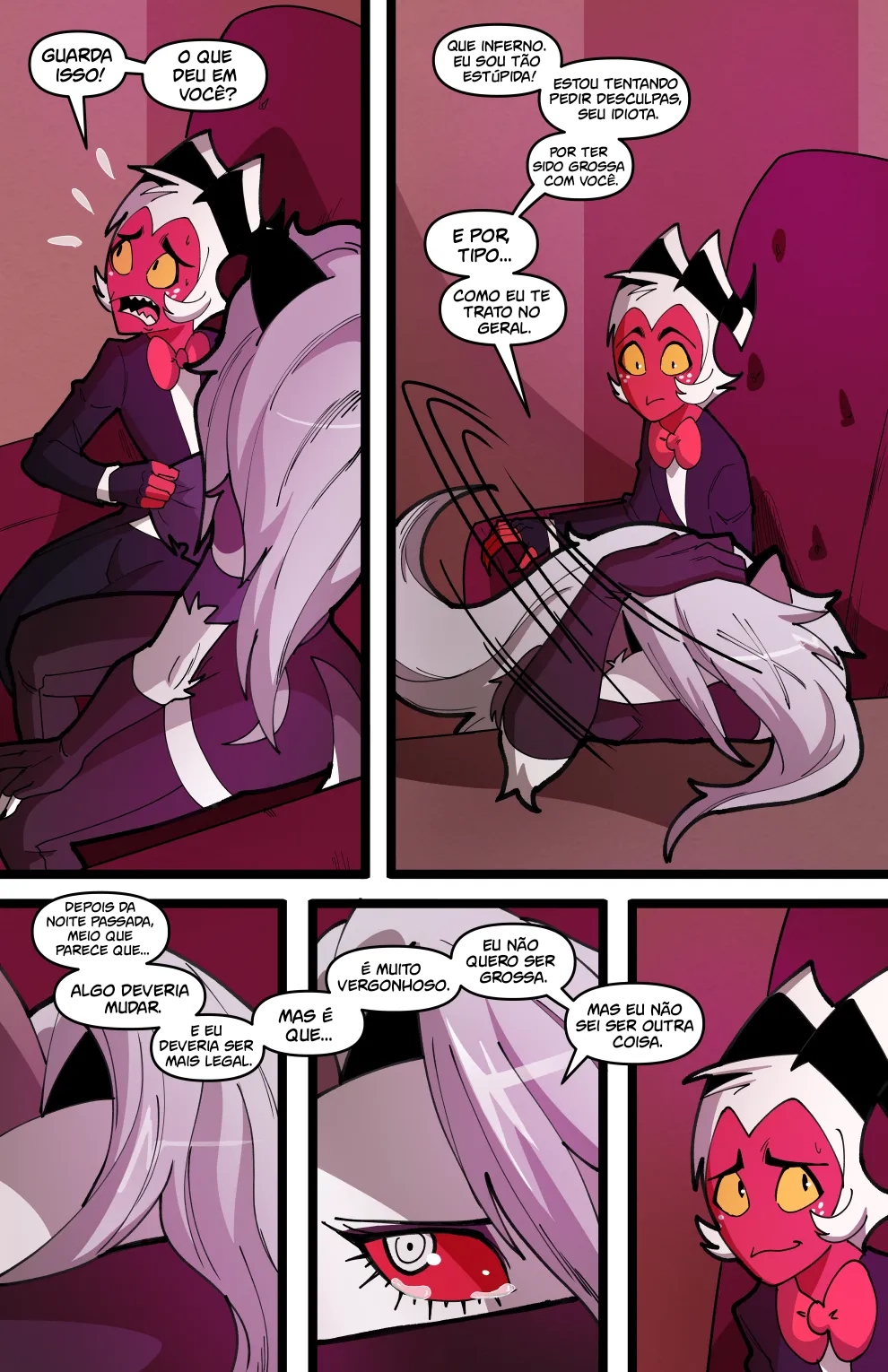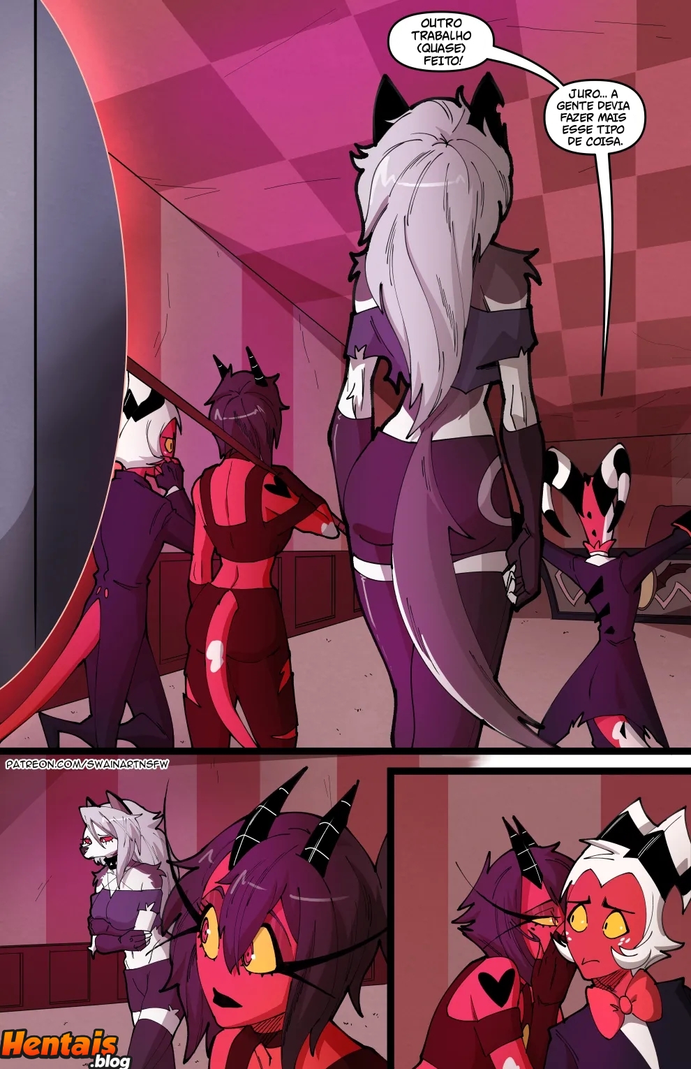 Helluva Boss Hentai: Trio Infernal VL.02 – Venham ler a continuação desse hentai sacana desse mangá Helluva Boss. O quadrinho pornô começa com a Loona no cio, a danada tinha acabado de transar, mais já estava com vontade de novo, querendo ganhar leitinho na buceta outra vez…