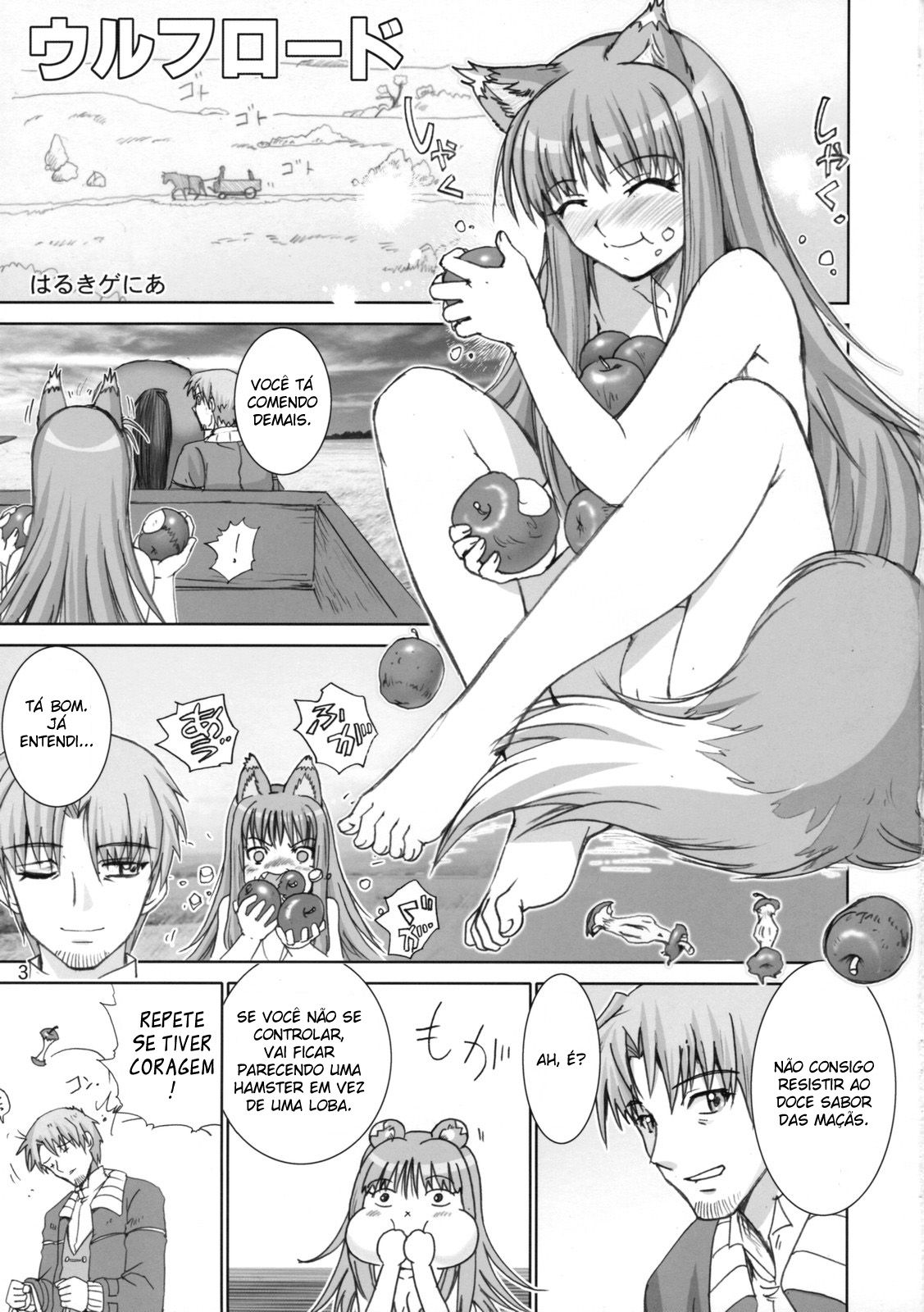 Hentai Erótico – Wolf Road – Haruki Genia: Esse quadrinho porno conta a historia de uma loba que se transforma em uma linda jovem. Essa linda lobinha ficou se masturbando atras de uma carroça, enquanto o garoto a ficava bastante excitado sentado lá na frente. A lobinha então percebeu que ele tava de pau duro, e foi logo caindo de boca na piroca. A safada chupou com talento e depois entrou na vara com força, e gozou bastante.