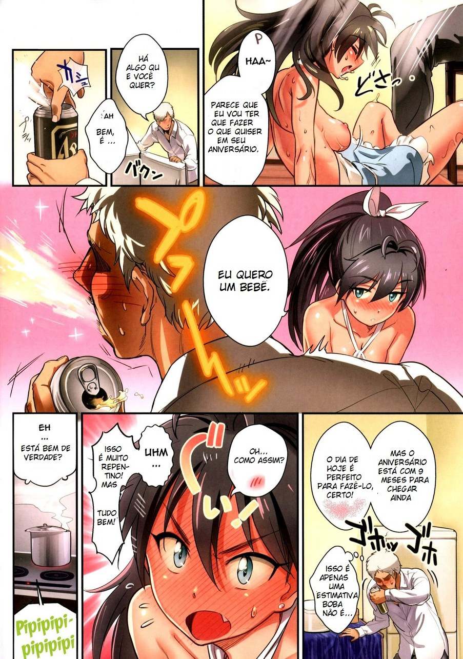 Quadrinho Erótico – Presente de Aniversário: Hentai Erótico conta a historia de uma esposa safada, que adora fantasia no aniversario do marido. Essa safada peituda ficou usando um avental quasse nua e sem calcinha, para deixar o maridão louco de tanto tesão. Eles então ficaram transando na cozinha, na maior putaria.